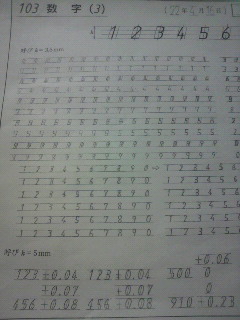 ちなみに宿題の内容はひたすら指定された大きさの文字を書く×6ページ